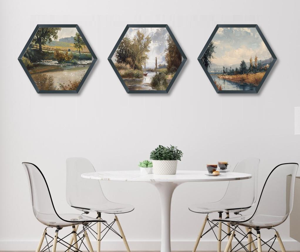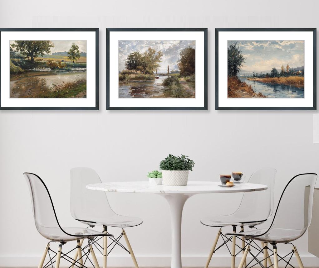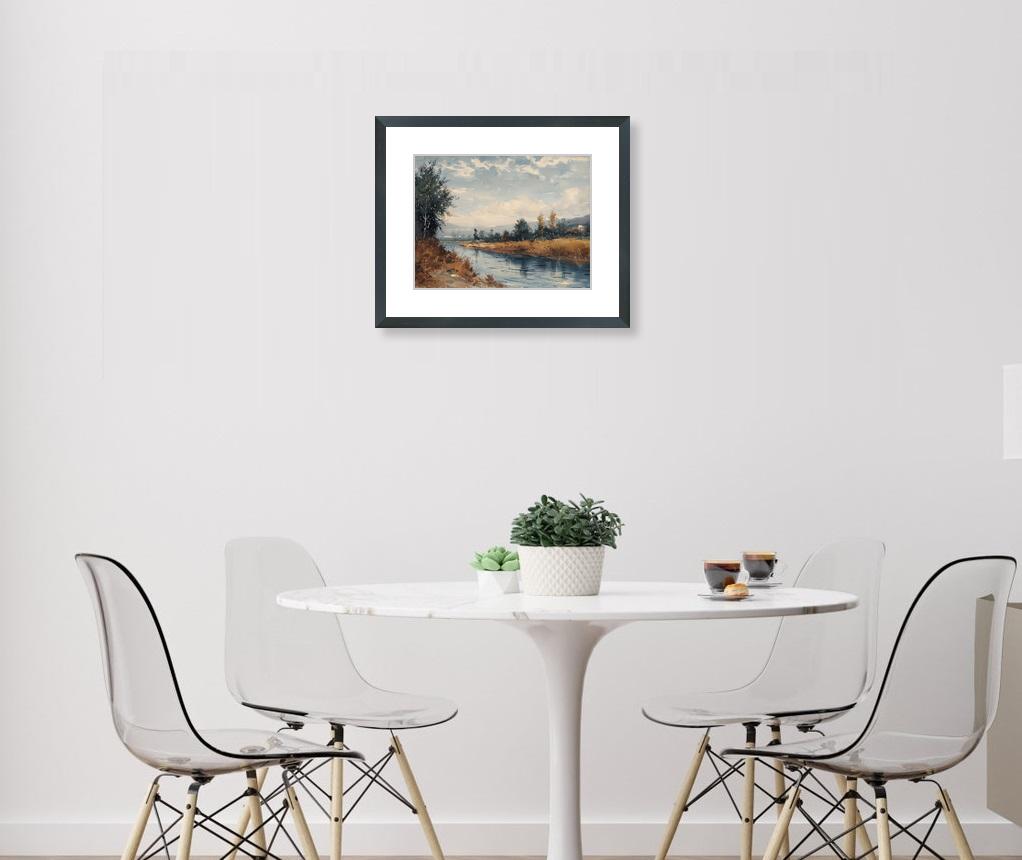 Morning light dances on a flowing stream and leafy trees. A bright and peaceful start to the day in nature’s arms.