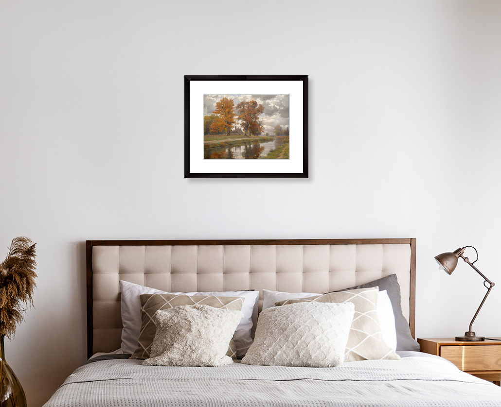 Tall trees stand still by the river, mirrored in the water below. A soft, peaceful moment frozen in time.