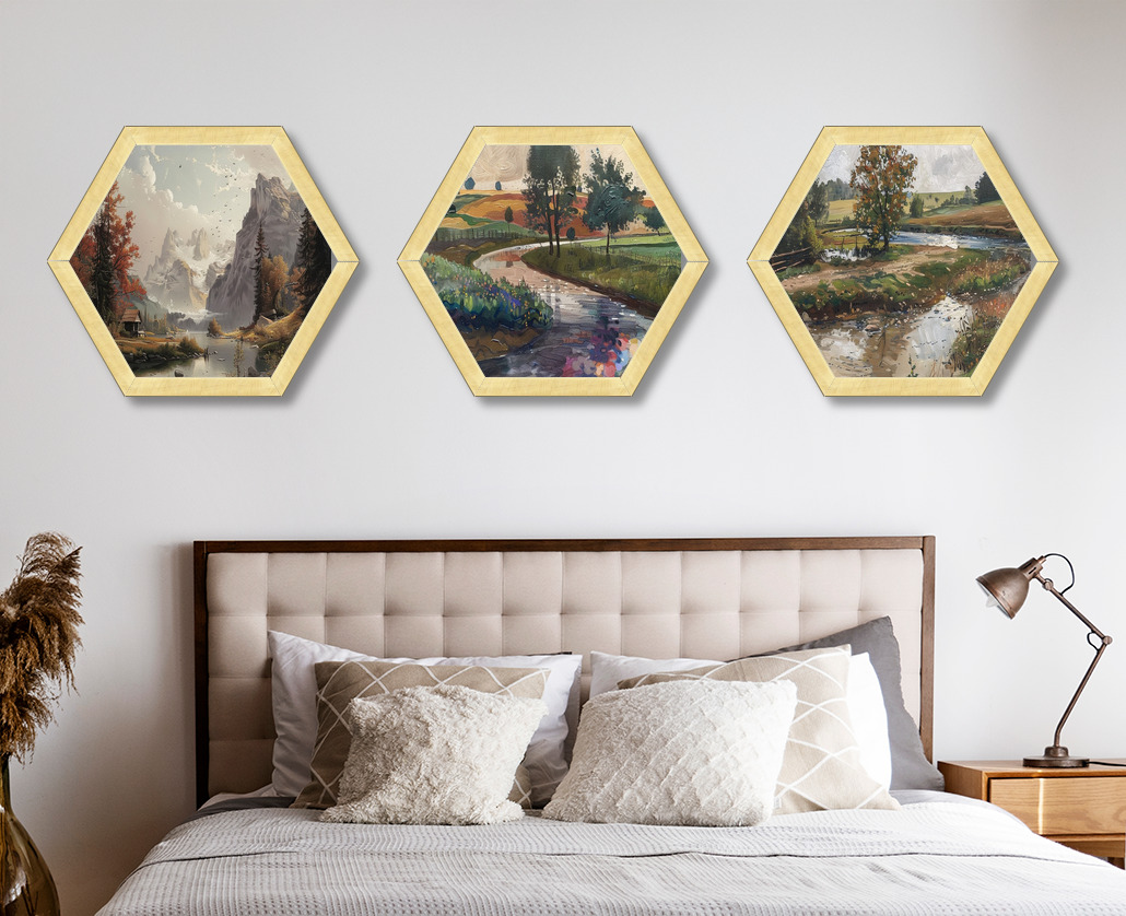 Peaceful countryside scene - Set of three