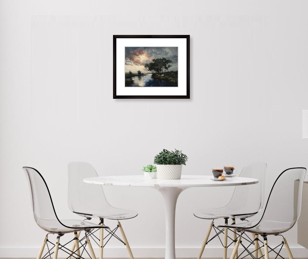 The river’s surface lies undisturbed, reflecting the world above. A simple, calming piece that brings peace to any space.