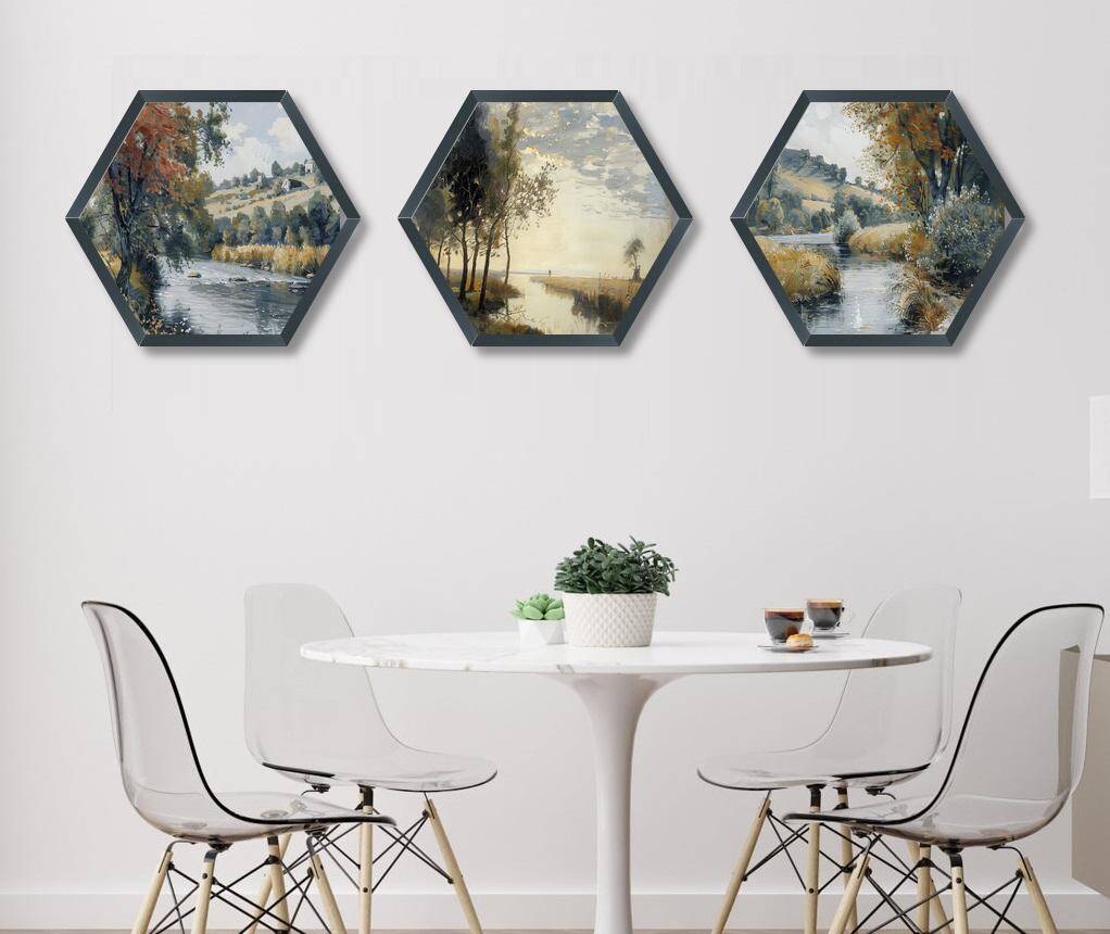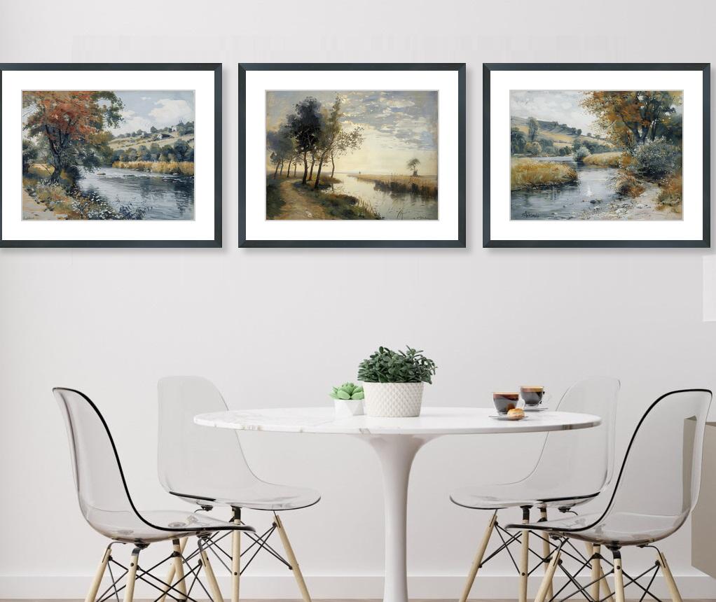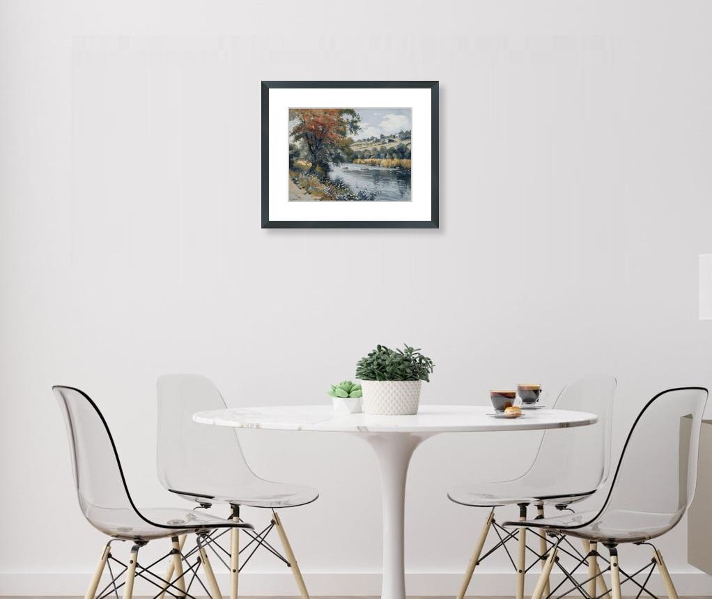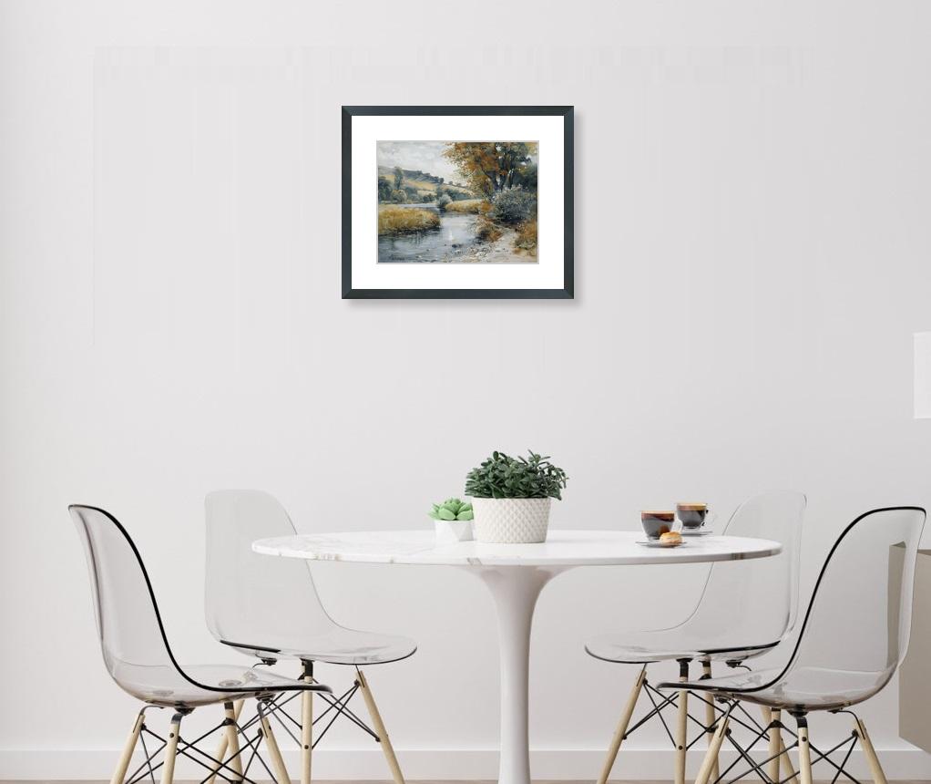 Gentle shades and flowing lines create a peaceful riverside. A timeless piece that invites calm and rest.