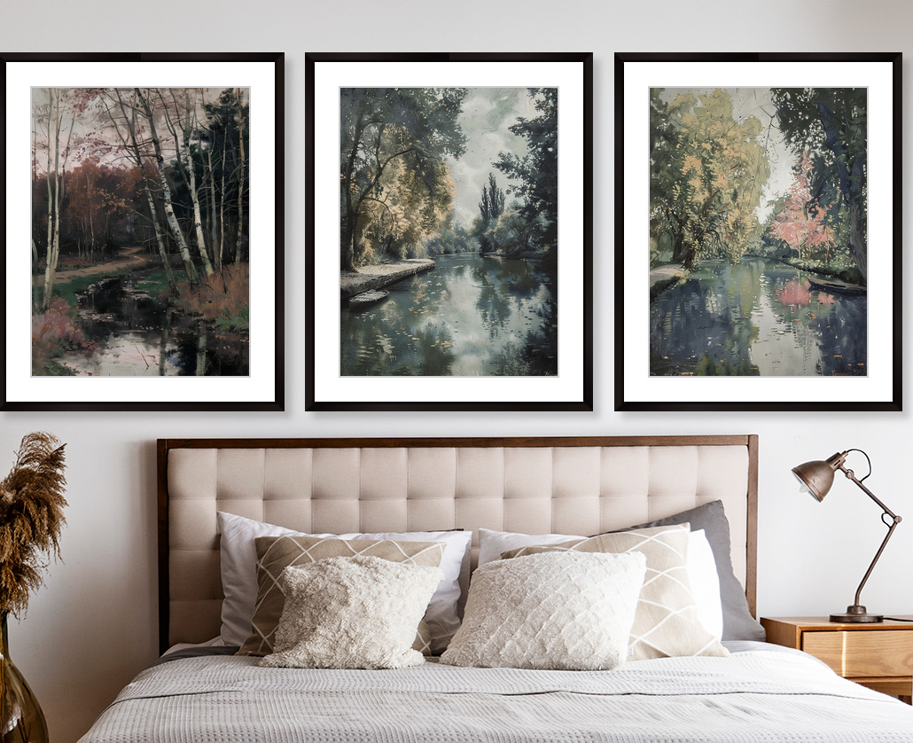 Serene riverside view, perfect with black, oak, or gold frame and soft white mount.